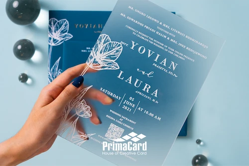 Prima Card menyediakan beberapa macam desain dan model yang dapat disesuaikan dengan tema pernikahan dan keinginan Anda.
